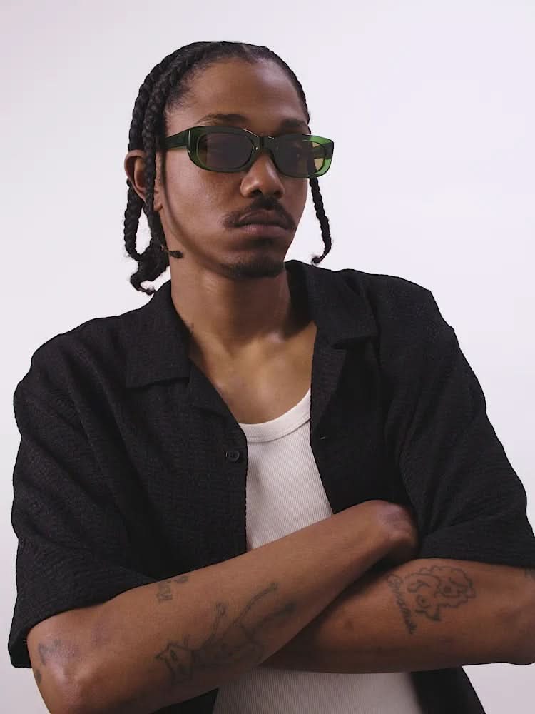 Rectangle Green Acetate frames in size with Brown UV Protection lenses.