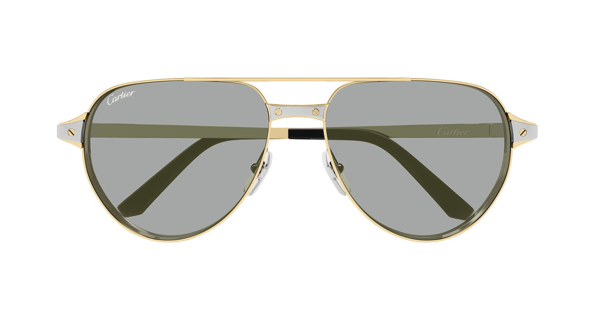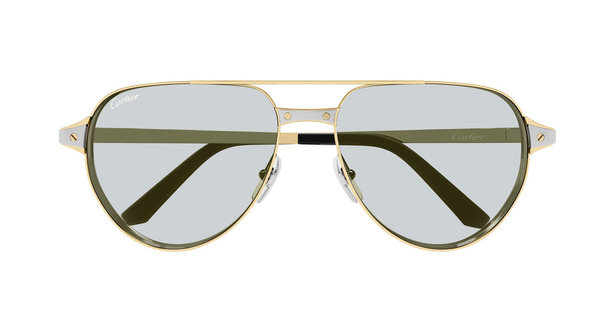 Cartier CT0425S Santos De Cartier eyewear for Unisex, featuring Gold Metal frames in size 59mm with Blue Photochromatic lenses.