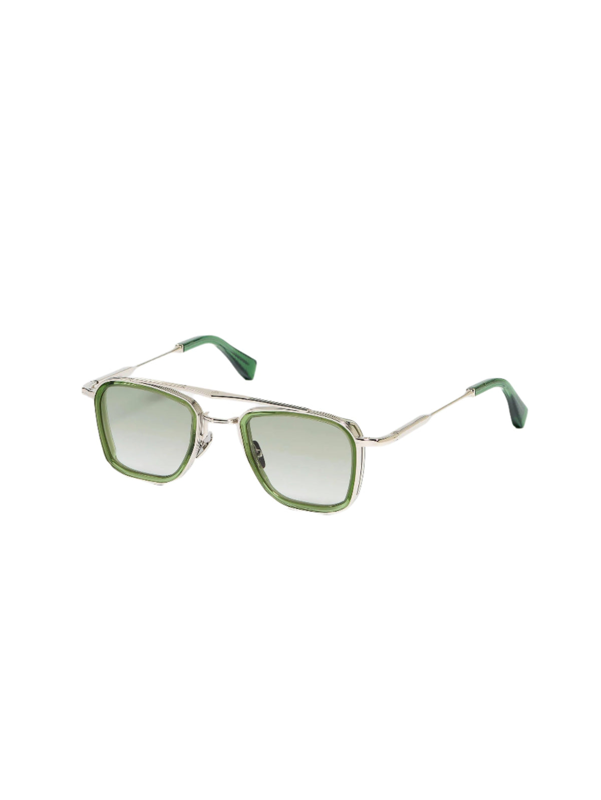John Dalia Unisex Sunglasses Protective Titanium Square Silver With Green Standard Lenses
