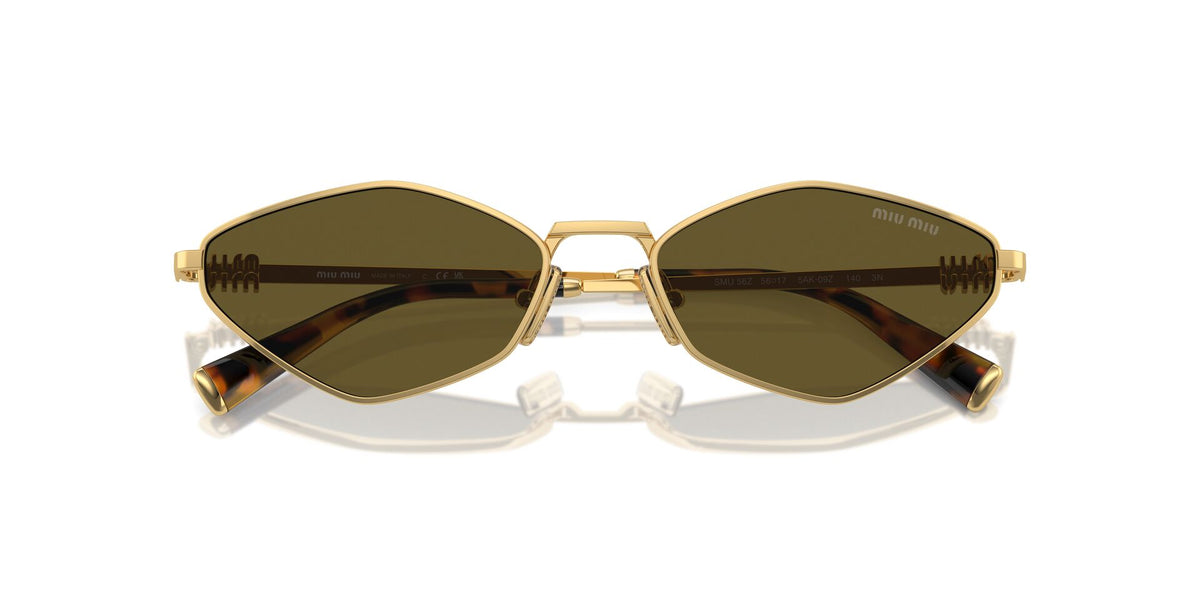 Miu Miu Female Sunglasses Protective Metal Irregular Gold With Dark Brown Standard Lenses