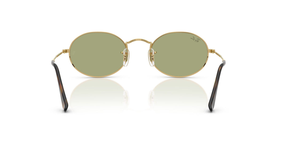 Rayban Unisex Sunglasses Protective Metal Oval Gold With Green Standard Lenses