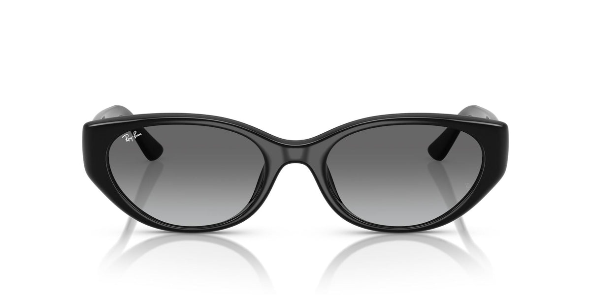 Rayban Female Sunglasses Protective Plastic Oval Black With Grey Standard Lenses