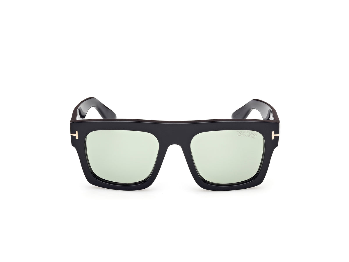 Tom Ford Unisex Sunglasses Protective Plastic Square Black With Green Photochromatic Lenses