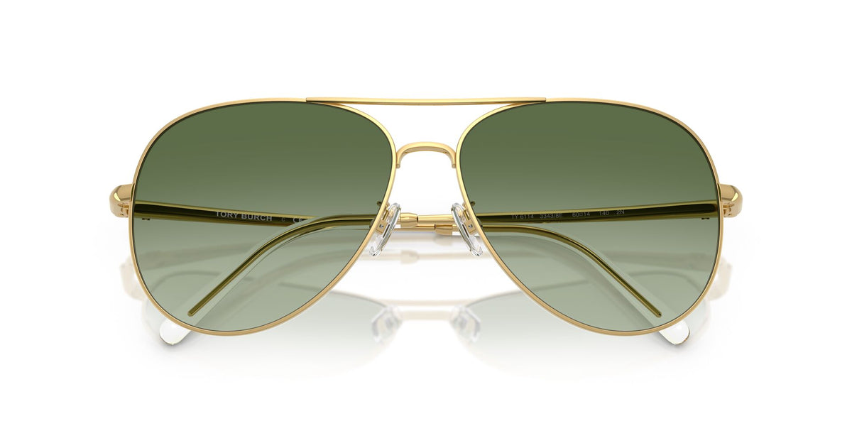 Tory Burch Unisex Sunglasses Protective Metal Aviator Gold With Green Standard Lenses