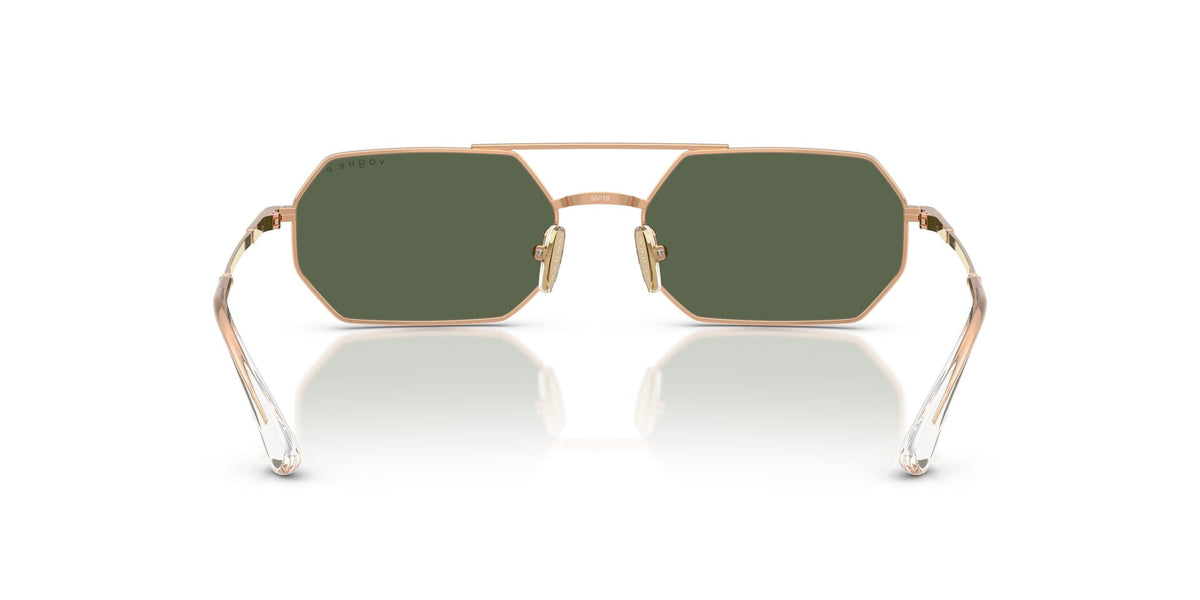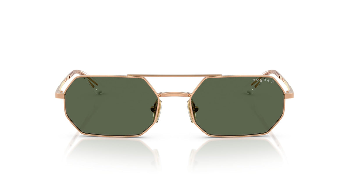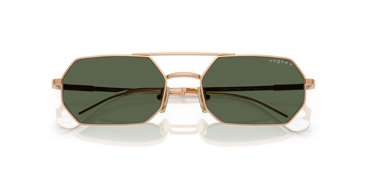 Vogue Female Sunglasses Protective Metal Rectangle Rose Gold With Dark Green Polarized Lenses